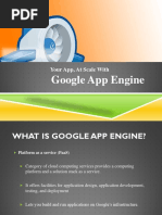 Google App Engine is basically a system that exposes various pieces of Google's scalable infrastructure so that you can write server-side applications on top of them. Google App Engine (often referred to as GAE or simply App Engine, and also used by the acronym GAE/J) is a platform as a service (PAAS) cloud computing platform for developing and hosting web applications in Googlemanaged data centres. It virtualizes applications across multiple servers. App Engine offers automatic scaling for web applications - as the number of requests increases for an application, App Engine automatically allocates more resources for the web application to handle the additional demand. It lets you run your web applications on Google's infrastructure. App Engine applications are easy to build, easy to maintain, and easy to scale as your traffic and data storage needs grow. With App Engine, there are no servers to maintain: You just upload your application, and it's ready to serve your users. You can serve your app from your own domain name (such
