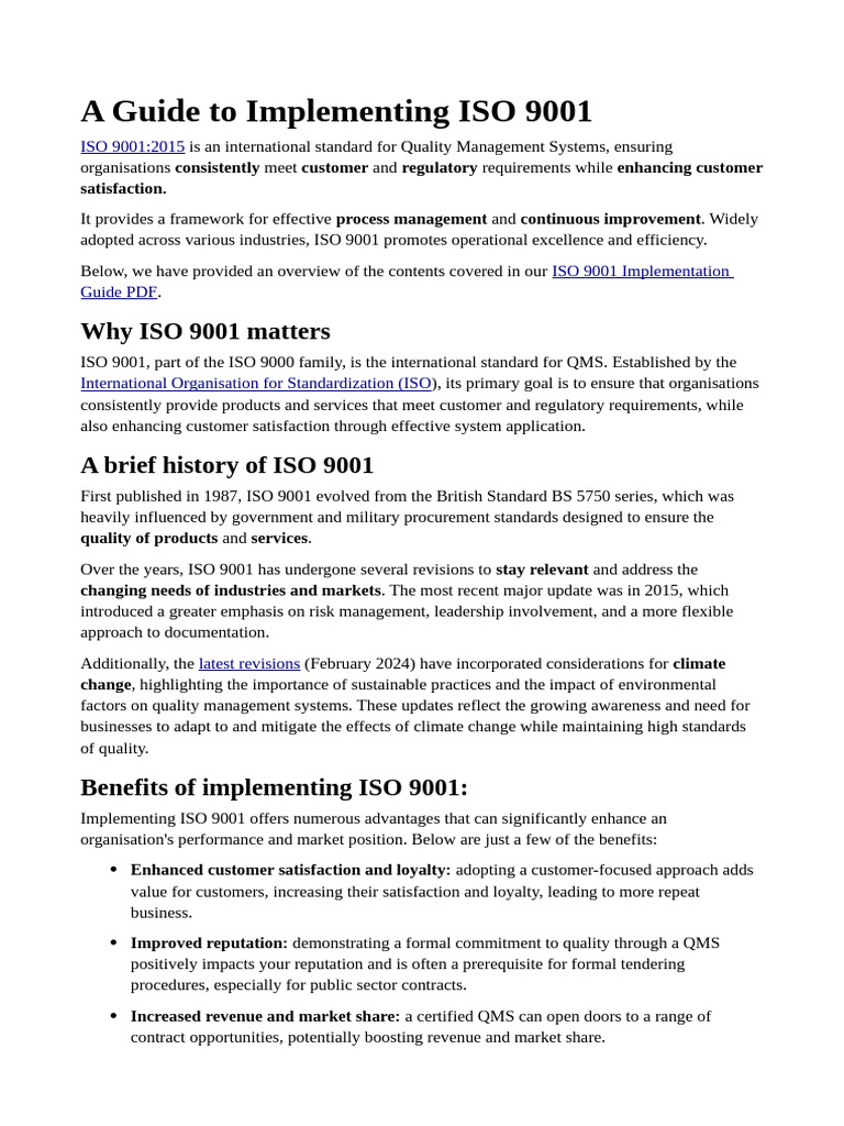 Our PDF guide for Implementing ISO 9001 is a valuable resource for organisations seeking