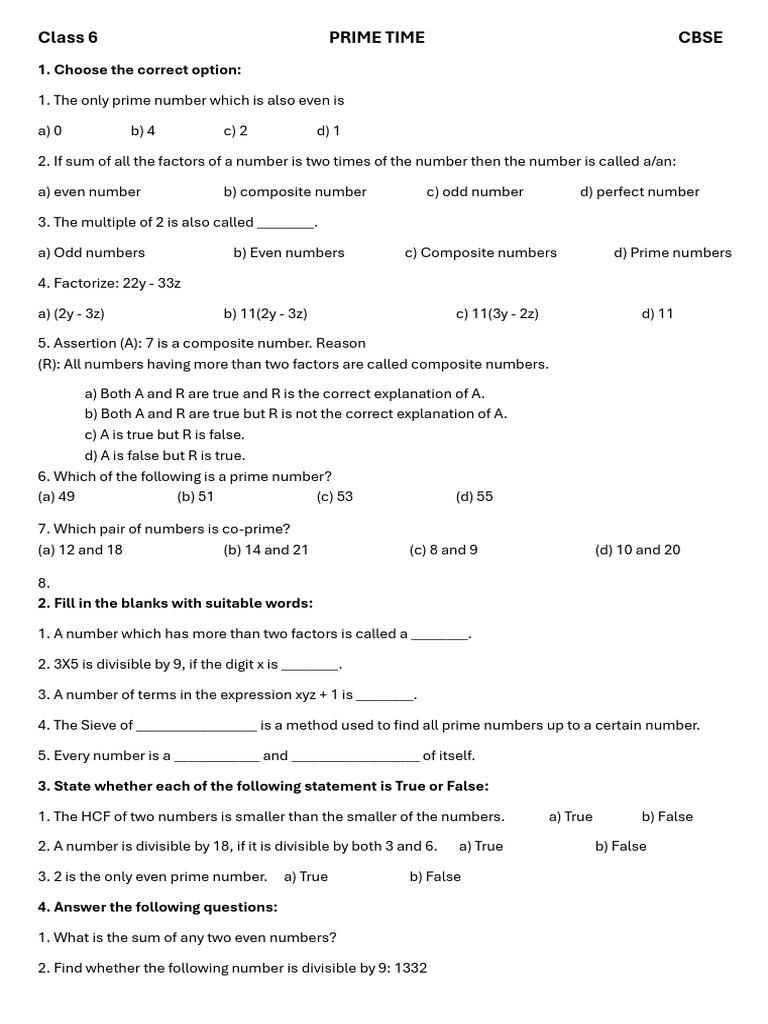 a) Odd numbers b) Even numbers c) Composite numbers d) Prime numbers