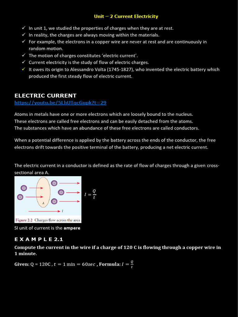 Given: Q = 120C , 𝑡 = 1 min = 60𝑠𝑒𝑐 , Formula: 𝐼 =