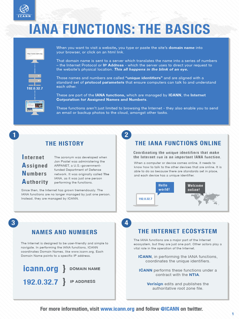 navigate. In performing the IANA functions, ICANN vital role in the operation of the Internet.