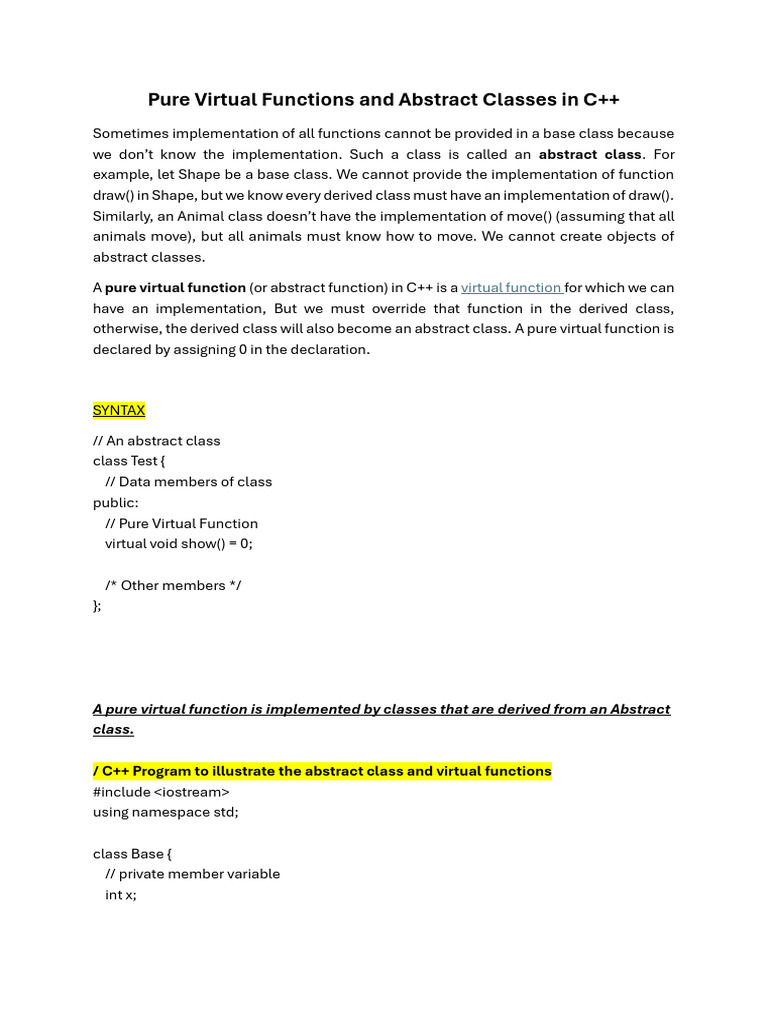 Pure Virtual Functions and Abstract Classes in C++