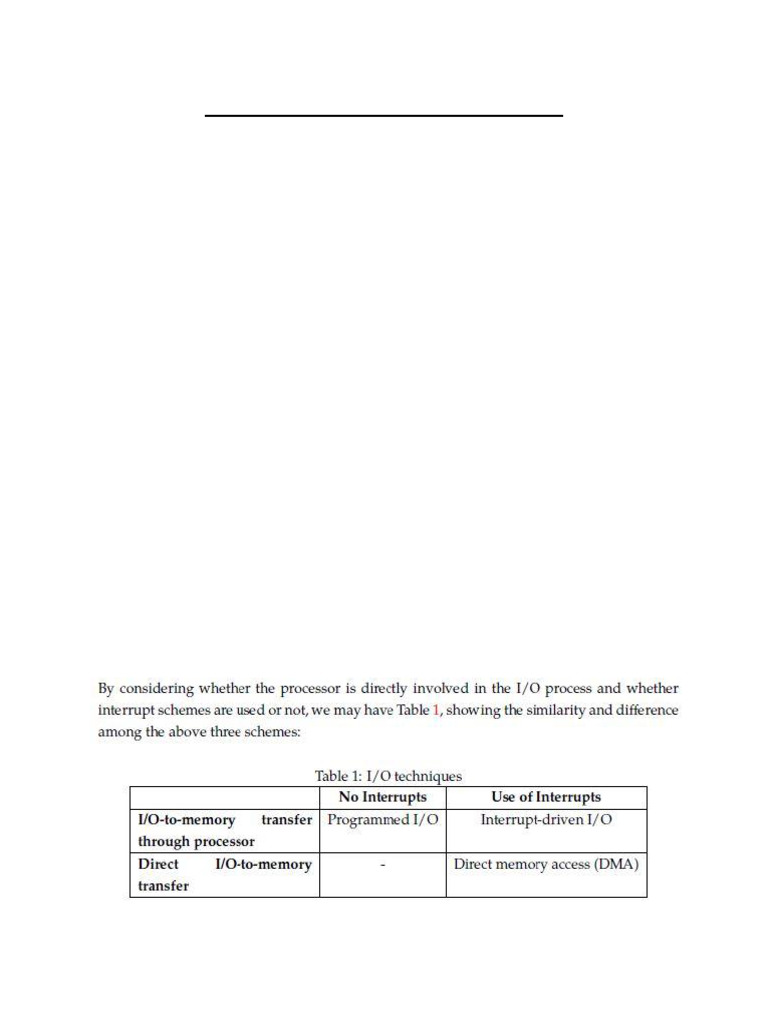 1. Programmed I/O: means the CPU is involved all the way through the I/O process. The