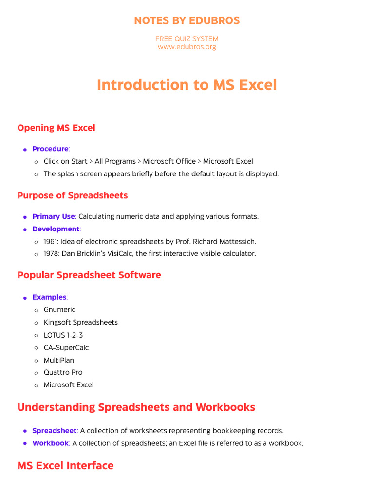 Workbook: A collection of spreadsheets; an Excel file is referred to as a workbook.