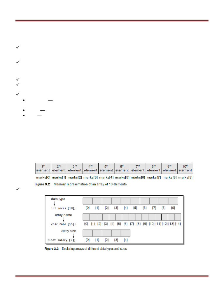 As shown in Fig. 3.2, the first element of the array marks[10] can be accessed by writing marks[0].
