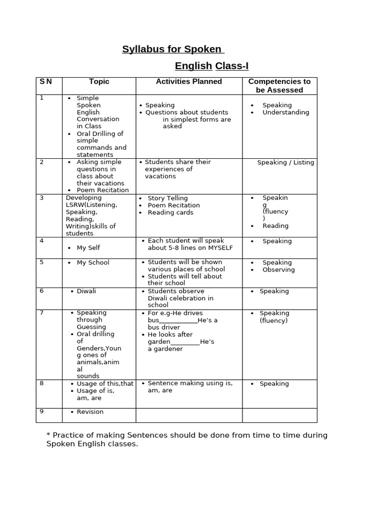 Spoken English Syllabus