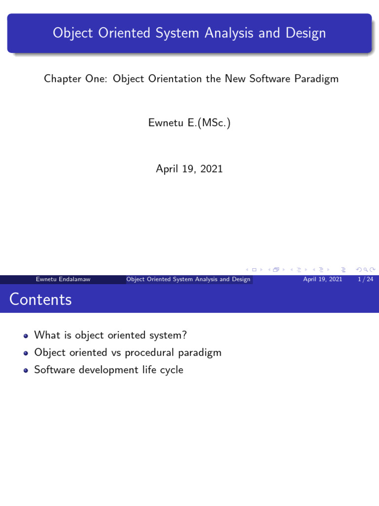 Ewnetu Endalamaw Object Oriented System Analysis and Design April 19, 2021 2 / 24