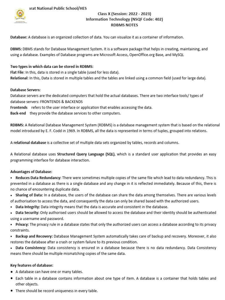RDBMS NOTES