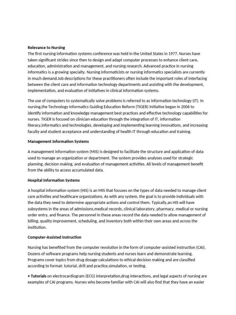 examples of CAI programs. Nurses who become familiar with CAI will also find that they have an easier