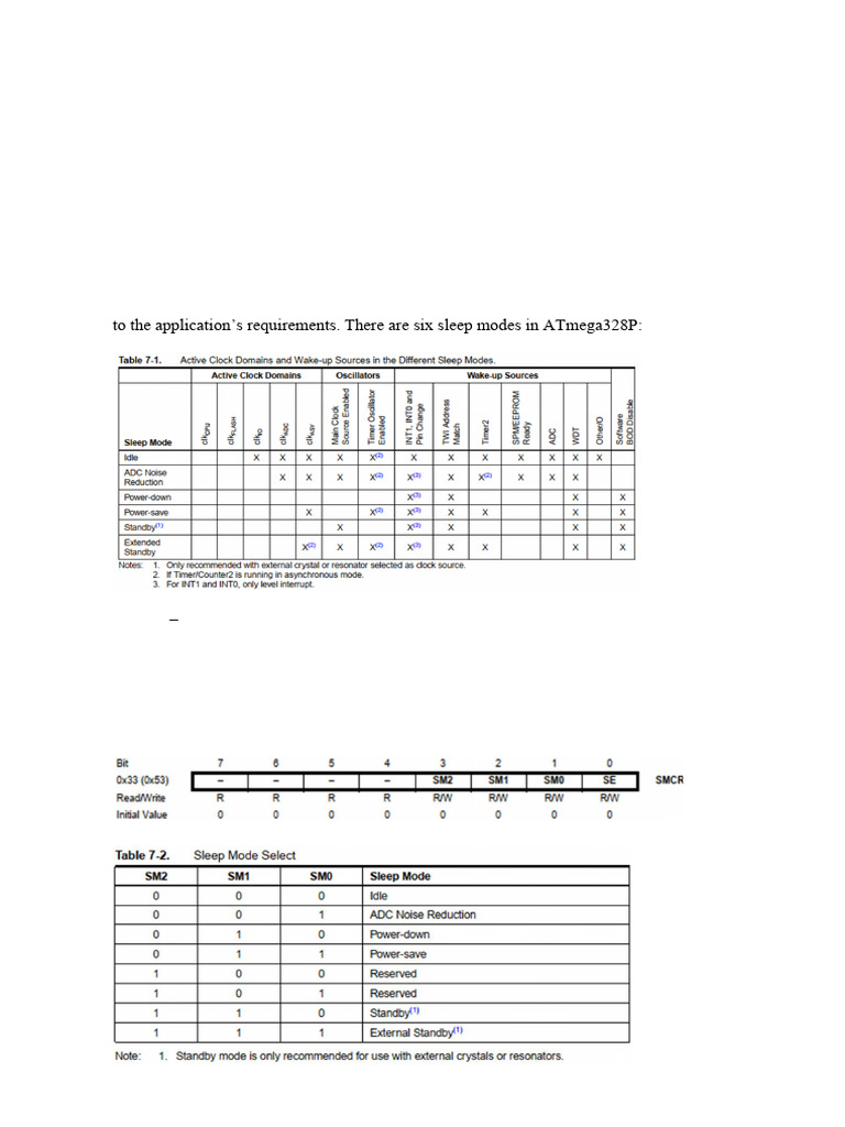 function of these bits (SM2:0) is shown in the next slide. For entering any of the sleep modes,