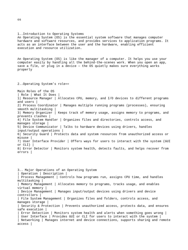 | Device Management | Manages input/output devices using drivers and ensures smooth