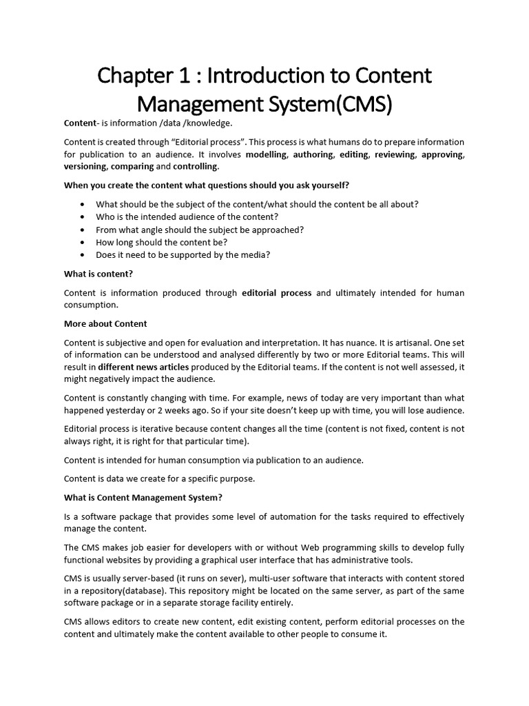 Content Reuse- CMS allows content reuse. Using a content in more than one place and in