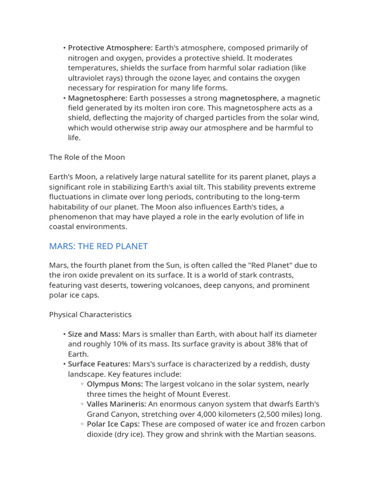 • Atmosphere: Mars has a thin atmosphere, about 100 times less dense