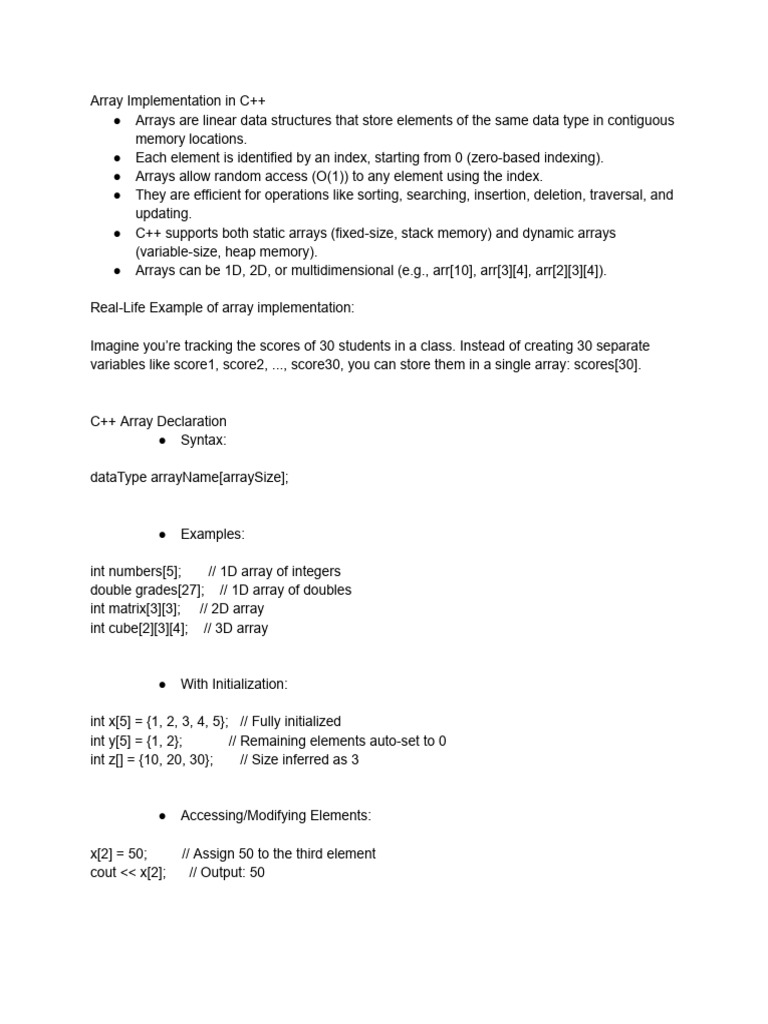 ● Arrays can be 1D, 2D, or multidimensional (e.g., arr[10], arr[3][4], arr[2][3][4]).