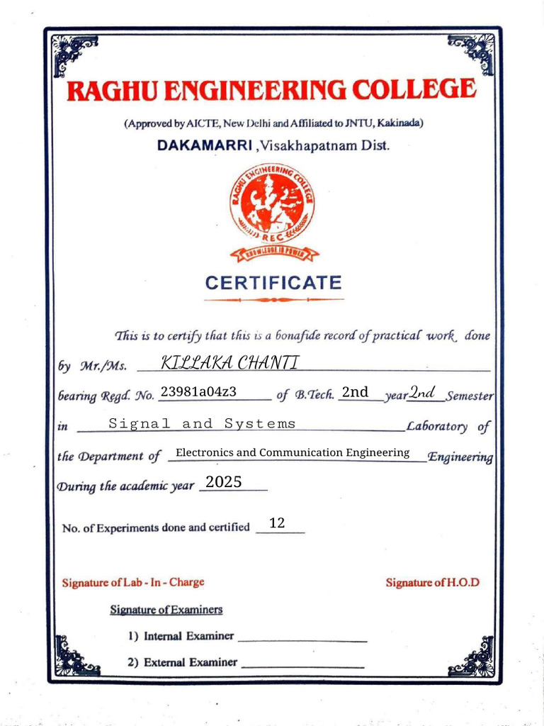 Signals and Systems Lab, Dept of ECE, Raghu Engineering College, Visakhapatnam Page1