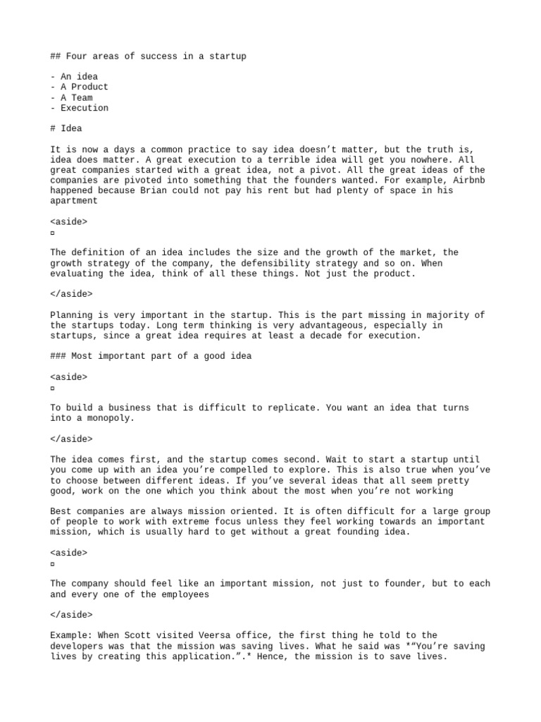 ## Four areas of success in a startup