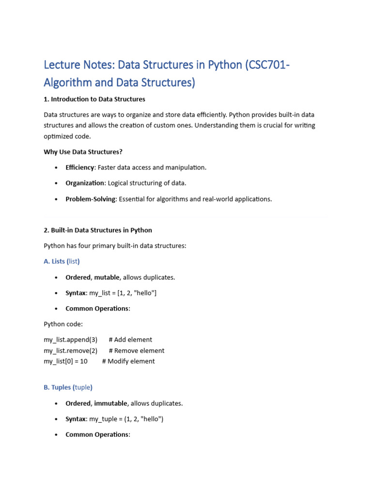 Lecture Notes: Data Structures in Python (CSC701-