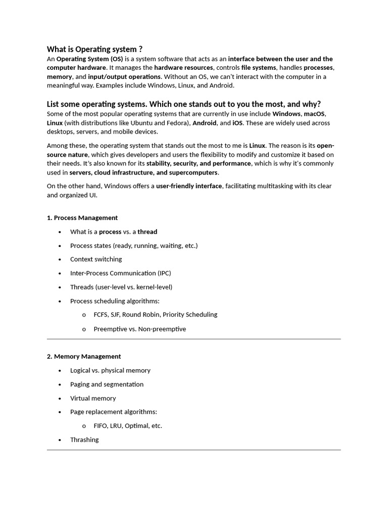 An Operating System (OS) is a system software that acts as an interface between the user and the