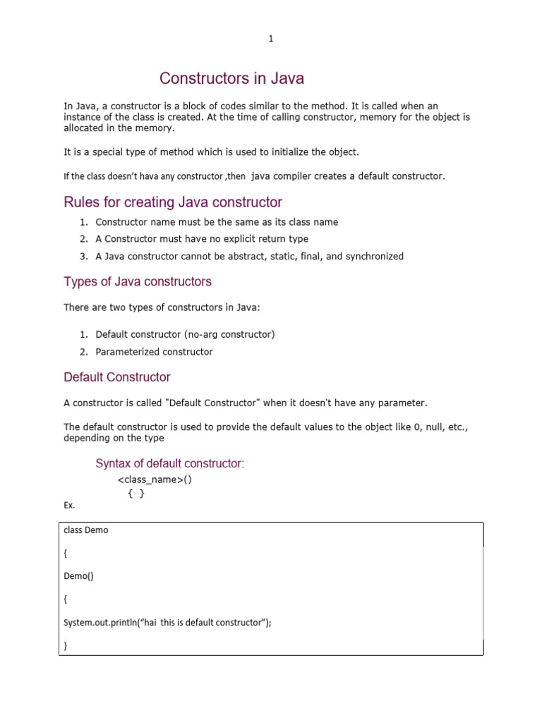 Constructors in Java