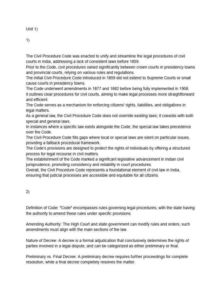 The Civil Procedure Code was enacted to unify and streamline the legal procedures of civil