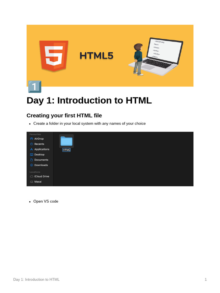 Now I will create a folder called Day-1, inside Day-1 I will add a file called intro.html
