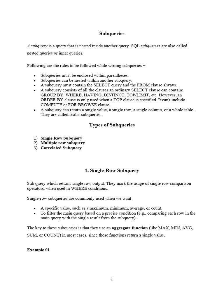 The key to these subqueries is that they use an aggregate function (like MAX, MIN, AVG,