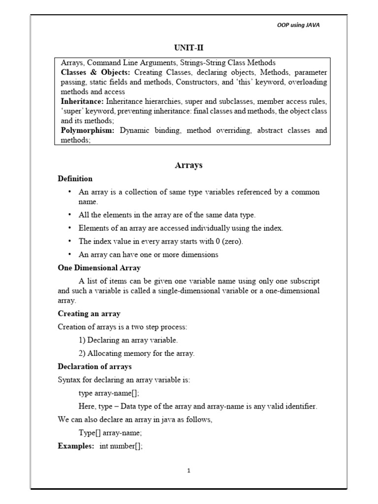OOP Using JAVA Unit-II
