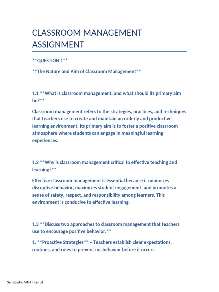 1.1 **What is classroom management, and what should its primary aim