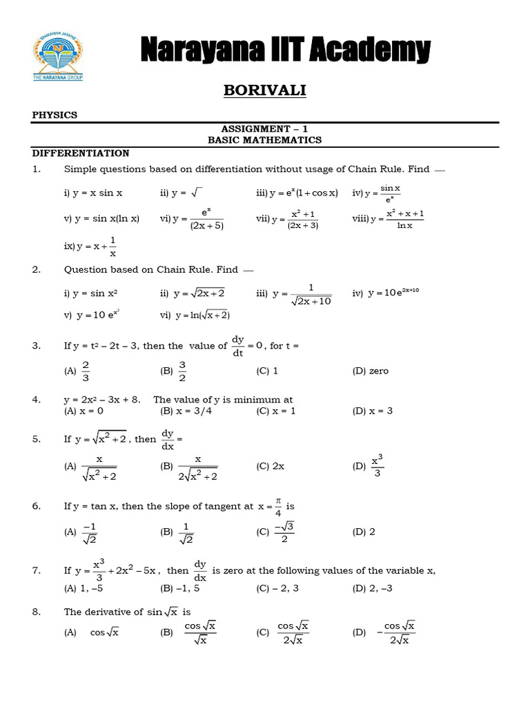 1. Simple questions based on differentiation without usage of Chain Rule. Find