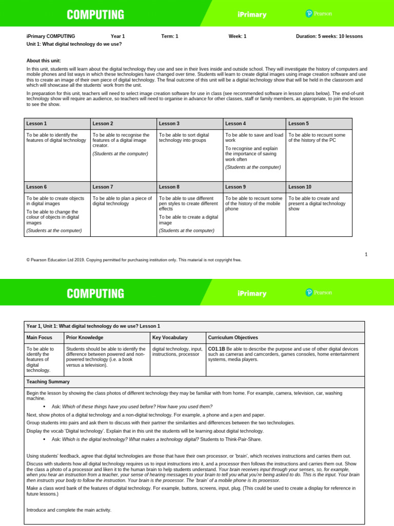 Year 1, Unit 1: What digital technology do we use? Lesson 2