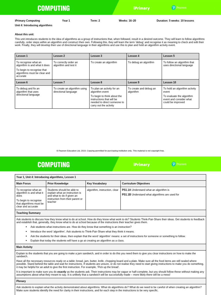 Year 1, Unit 4: Introducing algorithms, Lesson 1