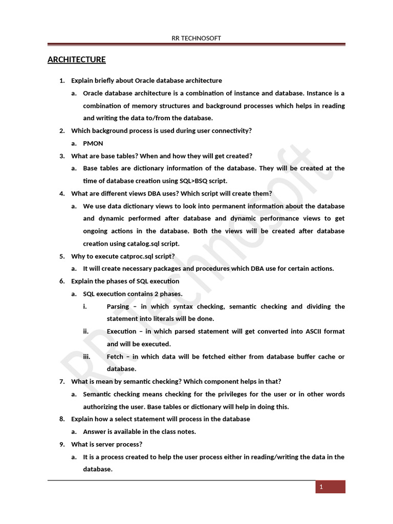 a. Oracle database architecture is a combination of instance and database. Instance is a