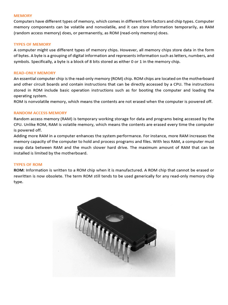and other circuit boards and contain instructions that can be directly accessed by a CPU. The instructions