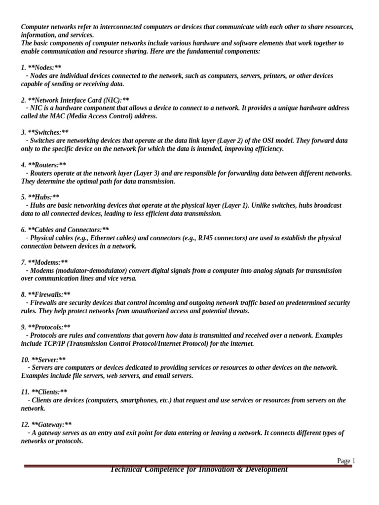 Understanding these basic components helps in building and maintaining functional and efficient computer networks
