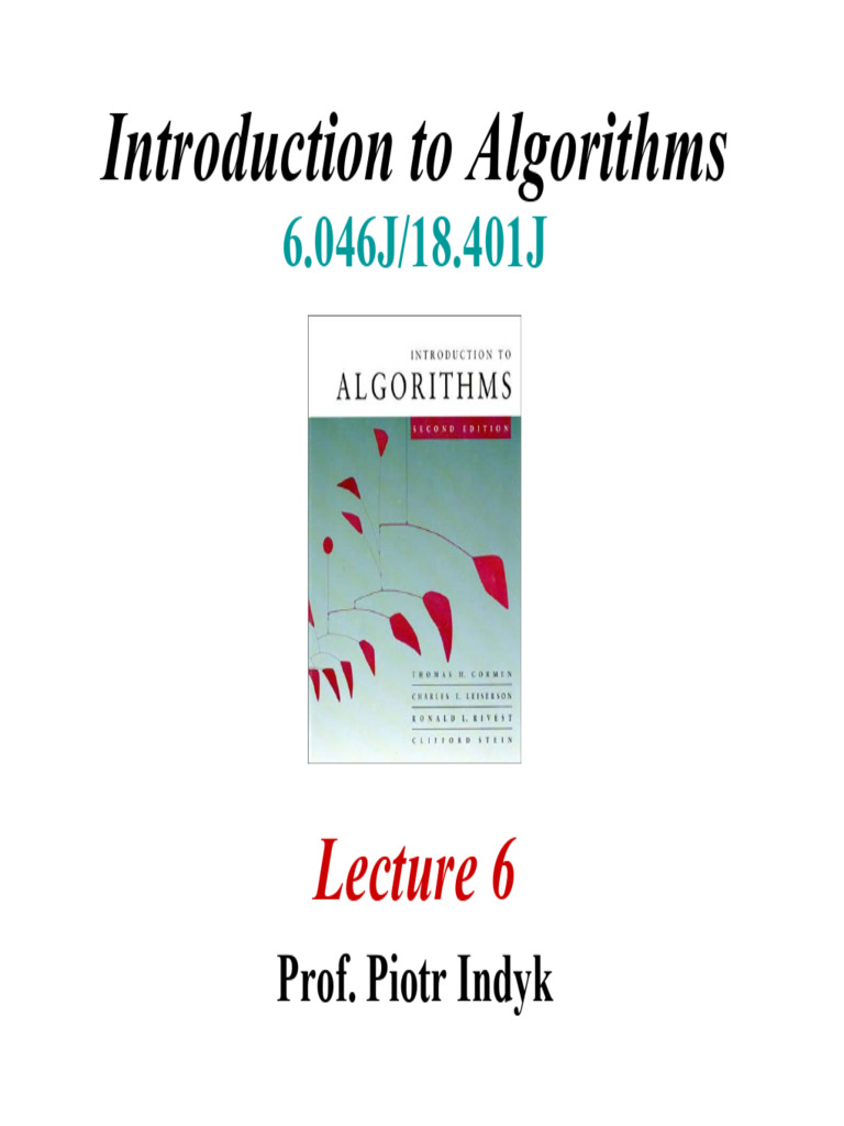 © Charles E. Leiserson and Piotr Indyk Introduction to Algorithms September 27, 2004 L6.2