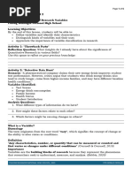 Lesson or presenting new variables from the previous and their role in research. previous lesson on the basics throughout the week.