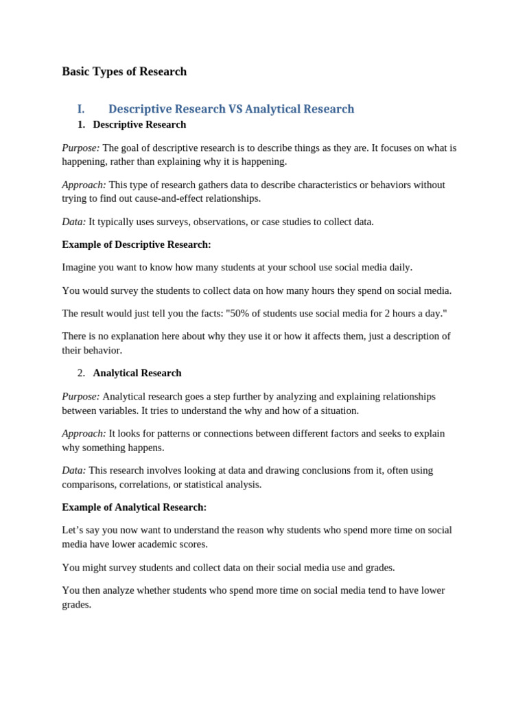 Purpose: Analytical research goes a step further by analyzing and explaining relationships