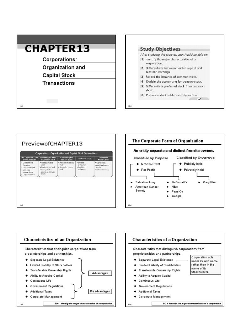 Separate Legal Existence Limited Liability of Stockholders Transferable Ownership Rights Ability to Acquire Capital Continuous Life Government Regulations Additional Taxes Corporate Management