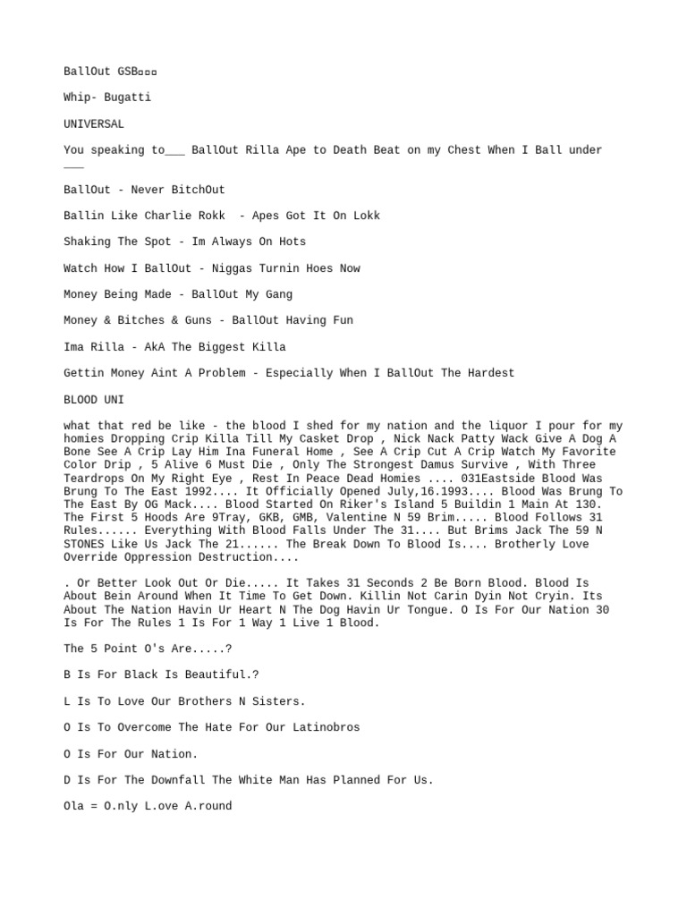 You speaking to___ BallOut Rilla Ape to Death Beat on my Chest When I Ball under
