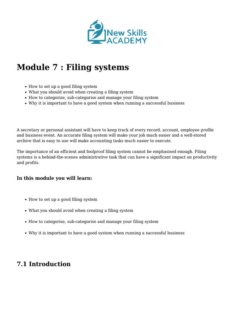 access and retrieve files at any point in time. A good filing system minimises the wastage of time and