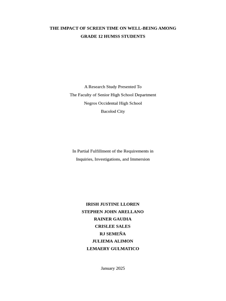 well-being of Grade 12 HUMSS students at Negros Occidental High School. It identifies