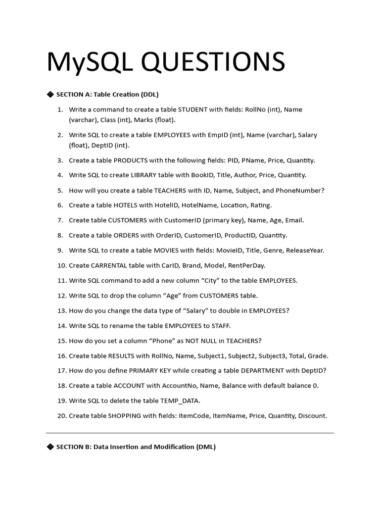 Section C: Data Retrieval (SELECT Queries) [25 Questions]