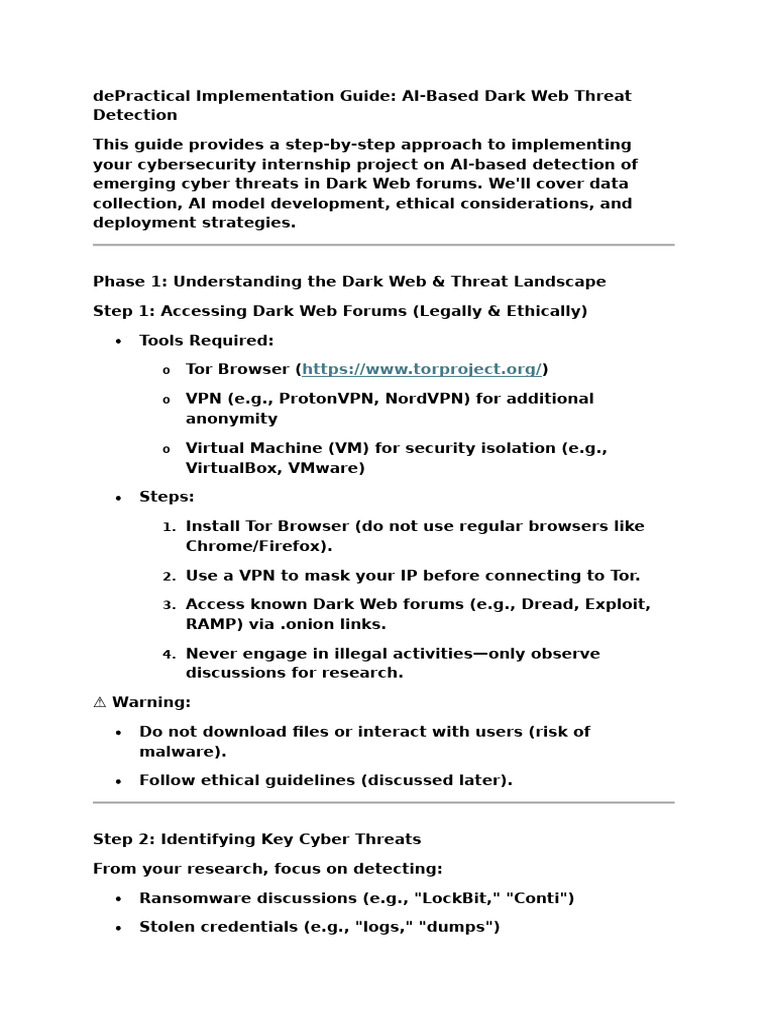 dePractical Implementation Guide: AI-Based Dark Web Threat