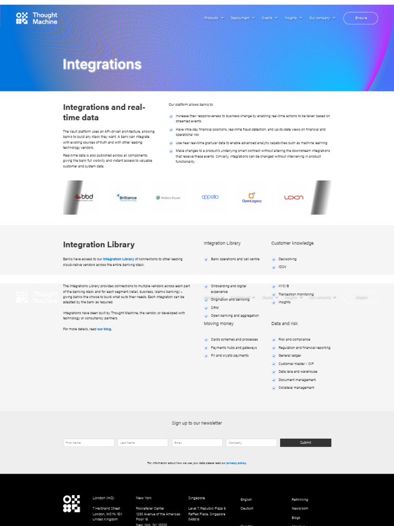 Integrations have been built by Thought Machine, the vendor, or developed with