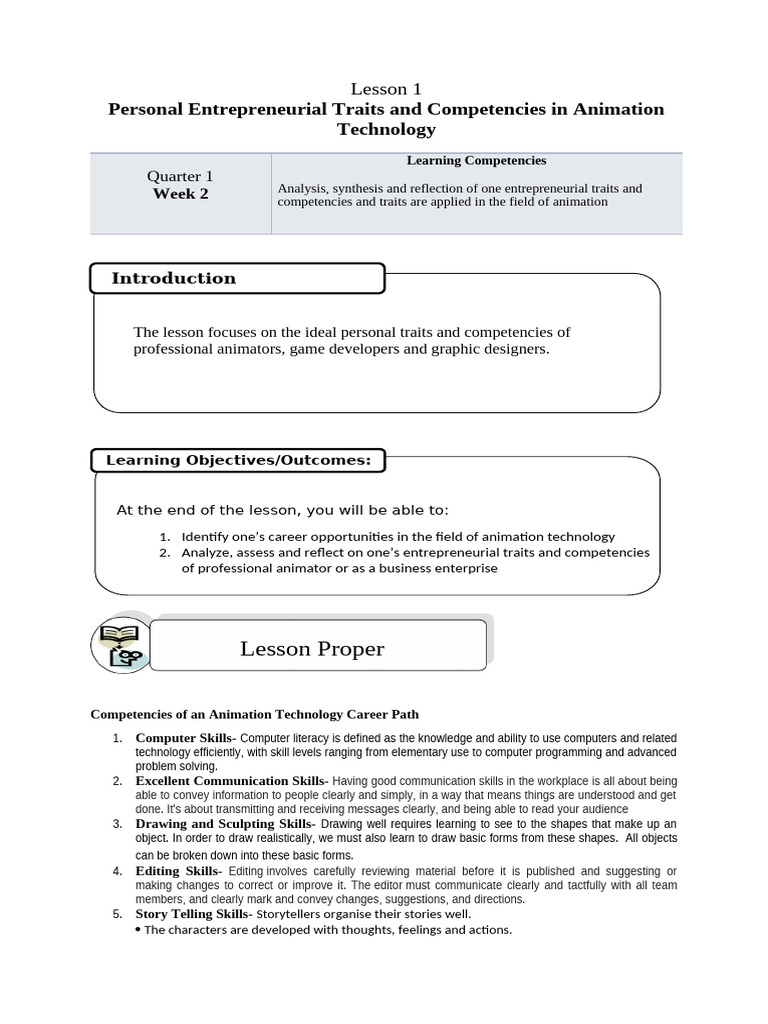 2. Analyze, assess and reflect on one’s entrepreneurial traits and competencies
