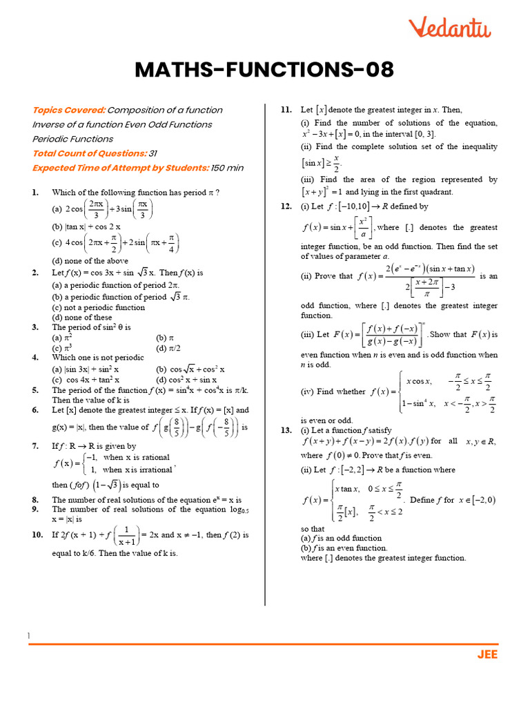 Topics Covered: Composition of a function 11. Let x denote the greatest integer in x. Then,