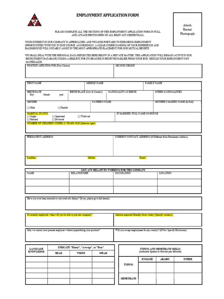 PLEASE COMPLETE ALL THE SECTIONS OF THIS EMPLOYMENT APPLICATION FORM IN FULL,
