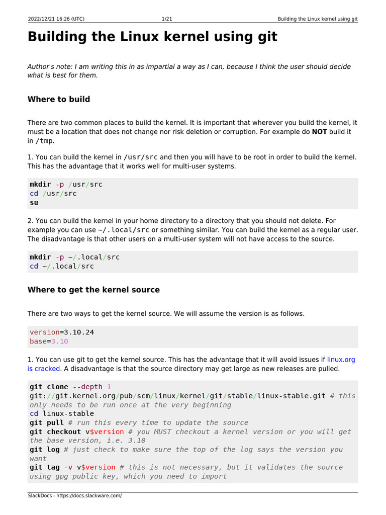 2014/11/26 howtos:slackware_admin:building_the_linux_kernel_using_git_repository https://docs.slackware.com/howtos:slackware_admin:building_the_linux_kernel_using_git_repository
