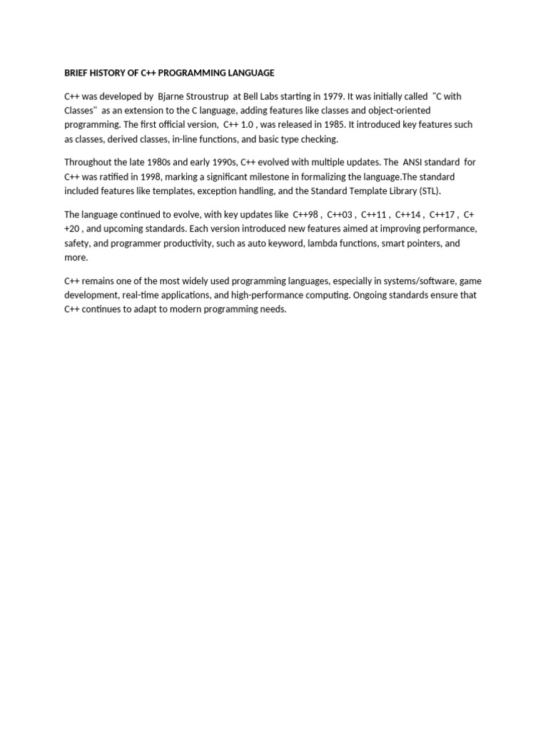 BRIEF HISTORY OF C++ PROGRAMMING LANGUAGE
