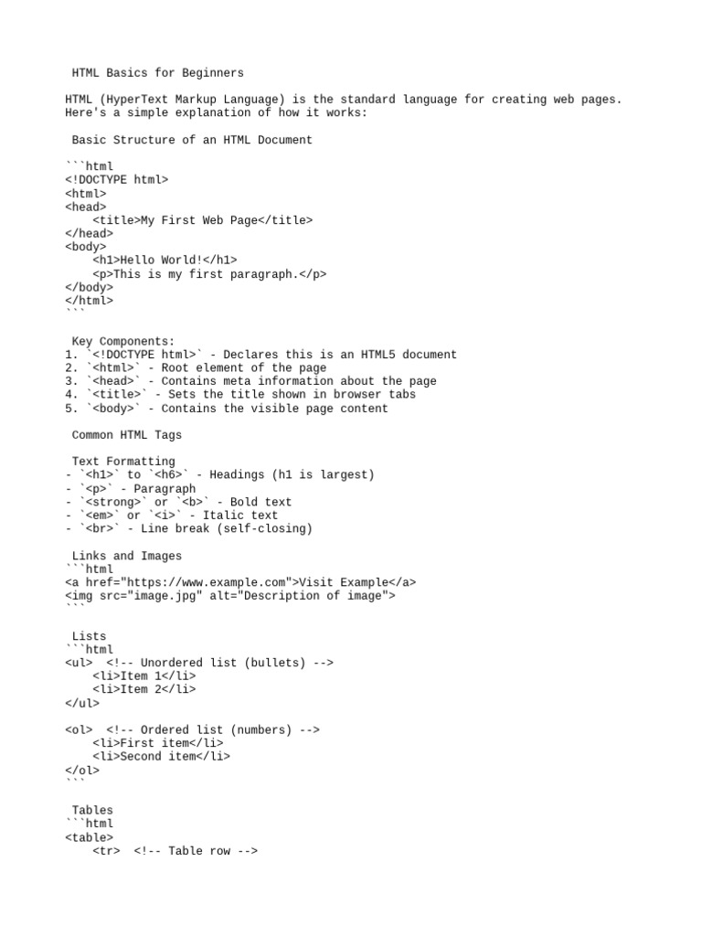 - `<h1>` to `<h6>` - Headings (h1 is largest)